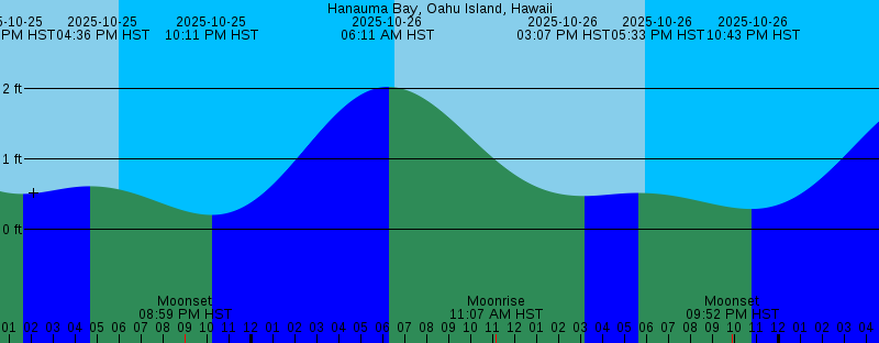2025-10-25 05:21 AM HST 2.11 feet High Tide 2025-10-25 06:30 AM HST Sunrise 2025-10-25 10:15 AM HST Moonrise 2025-10-25 01:34 PM HST 0.50 feet Low Tide 2025-10-25 04:36 PM HST 0.61 feet High Tide 2025-10-25 05:58 PM HST Sunset 2025-10-25 08:59 PM HST Moonset 2025-10-25 10:11 PM HST 0.21 feet Low Tide 2025-10-26 06:11 AM HST 2.03 feet High Tide 2025-10-26 06:31 AM HST Sunrise 2025-10-26 11:07 AM HST Moonrise 2025-10-26 03:07 PM HST 0.47 feet Low Tide 2025-10-26 05:33 PM HST 0.52 feet High Tide 2025-10-26 05:57 PM HST Sunset 2025-10-26 09:52 PM HST Moonset 2025-10-26 10:43 PM HST 0.29 feet Low Tide 2025-10-27 06:31 AM HST Sunrise 2025-10-27 07:11 AM HST 1.96 feet High Tide 2025-10-27 11:56 AM HST Moonrise 2025-10-27 04:25 PM HST 0.41 feet Low Tide 2025-10-27 05:57 PM HST Sunset 2025-10-27 07:42 PM HST 0.48 feet High Tide 2025-10-27 10:48 PM HST Moonset 2025-10-27 11:33 PM HST 0.40 feet Low Tide 2025-10-28 06:32 AM HST Sunrise 2025-10-28 08:17 AM HST 1.92 feet High Tide 2025-10-28 12:42 PM HST Moonrise 2025-10-28 05:04 PM HST 0.33 feet Low Tide 2025-10-28 05:56 PM HST Sunset 2025-10-28 09:56 PM HST 0.59 feet High Tide 2025-10-28 11:45 PM HST Moonset 2025-10-29 01:10 AM HST 0.52 feet Low Tide |