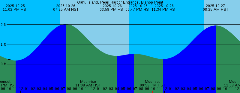 2025-10-25 02:25 PM HST 0.44 feet Low Tide 2025-10-25 05:50 PM HST 0.61 feet High Tide 2025-10-25 05:59 PM HST Sunset 2025-10-25 09:00 PM HST Moonset 2025-10-25 11:02 PM HST 0.18 feet Low Tide 2025-10-26 06:32 AM HST Sunrise 2025-10-26 07:25 AM HST 2.03 feet High Tide 2025-10-26 11:08 AM HST Moonrise 2025-10-26 03:58 PM HST 0.42 feet Low Tide 2025-10-26 05:58 PM HST Sunset 2025-10-26 06:47 PM HST 0.52 feet High Tide 2025-10-26 09:53 PM HST Moonset 2025-10-26 11:34 PM HST 0.26 feet Low Tide 2025-10-27 06:32 AM HST Sunrise 2025-10-27 08:25 AM HST 1.96 feet High Tide 2025-10-27 11:58 AM HST Moonrise 2025-10-27 05:16 PM HST 0.36 feet Low Tide 2025-10-27 05:58 PM HST Sunset 2025-10-27 08:56 PM HST 0.48 feet High Tide 2025-10-27 10:49 PM HST Moonset 2025-10-28 12:24 AM HST 0.35 feet Low Tide 2025-10-28 06:33 AM HST Sunrise 2025-10-28 09:31 AM HST 1.92 feet High Tide 2025-10-28 12:44 PM HST Moonrise 2025-10-28 05:55 PM HST 0.29 feet Low Tide 2025-10-28 05:57 PM HST Sunset 2025-10-28 11:10 PM HST 0.59 feet High Tide 2025-10-28 11:46 PM HST Moonset 2025-10-29 02:01 AM HST 0.46 feet Low Tide 2025-10-29 06:22 AM HST First Quarter 2025-10-29 06:33 AM HST Sunrise 2025-10-29 10:33 AM HST 1.92 feet High Tide |