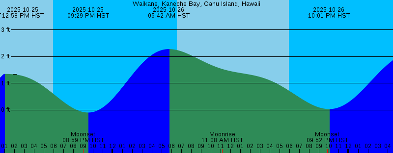 2025-10-25 04:46 AM HST 2.40 feet High Tide 2025-10-25 06:31 AM HST Sunrise 2025-10-25 10:16 AM HST Moonrise 2025-10-25 12:22 PM HST 1.19 feet Low Tide 2025-10-25 12:58 PM HST 1.35 feet High Tide 2025-10-25 05:58 PM HST Sunset 2025-10-25 08:59 PM HST Moonset 2025-10-25 09:29 PM HST -0.09 feet Low Tide 2025-10-26 05:42 AM HST 2.28 feet High Tide 2025-10-26 06:32 AM HST Sunrise 2025-10-26 11:08 AM HST Moonrise 2025-10-26 05:58 PM HST Sunset 2025-10-26 09:52 PM HST Moonset 2025-10-26 10:01 PM HST 0.04 feet Low Tide 2025-10-27 06:32 AM HST Sunrise 2025-10-27 06:58 AM HST 2.20 feet High Tide 2025-10-27 11:58 AM HST Moonrise 2025-10-27 05:57 PM HST Sunset 2025-10-27 10:42 PM HST 0.19 feet Low Tide 2025-10-27 10:48 PM HST Moonset 2025-10-28 06:33 AM HST Sunrise 2025-10-28 08:24 AM HST 2.19 feet High Tide 2025-10-28 12:44 PM HST Moonrise 2025-10-28 05:57 PM HST Sunset 2025-10-28 11:45 PM HST Moonset 2025-10-28 11:57 PM HST 0.37 feet Low Tide |